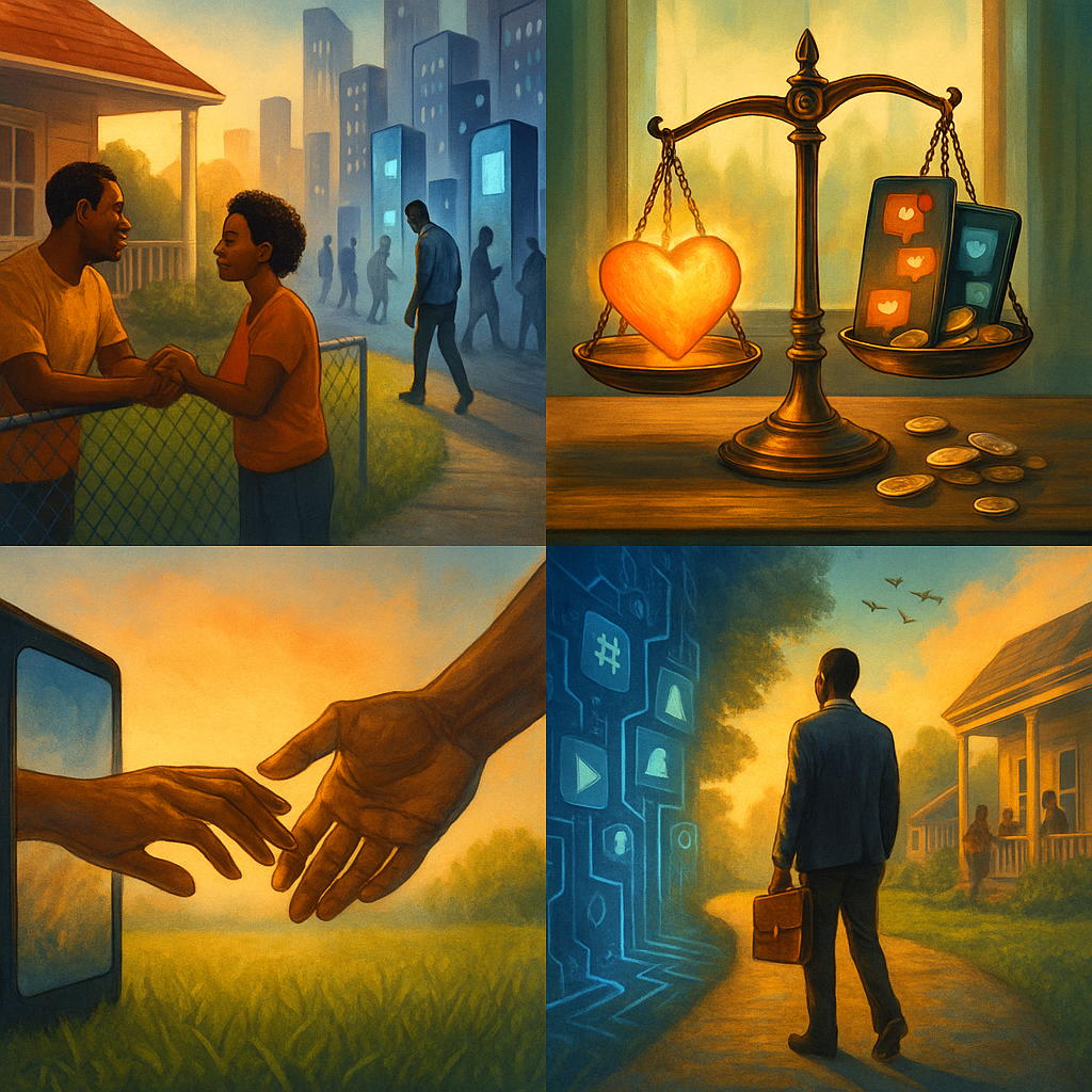 I’ve been thinking about the shift happening in our world. We take the simplest things for granted—relationship, human connection, friendship. I remember a time you could linger on a porch, talk across a fence, or enjoy seeing people walk up and down the street with no reason, no agenda—just presence.
